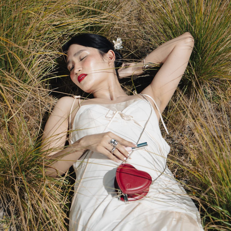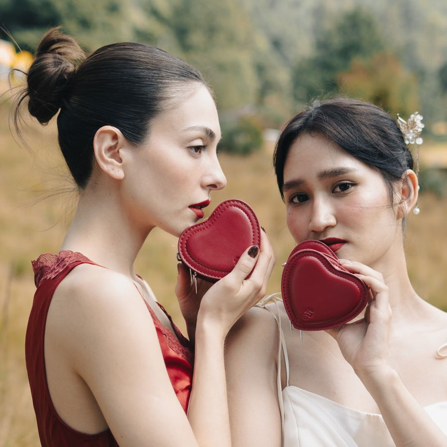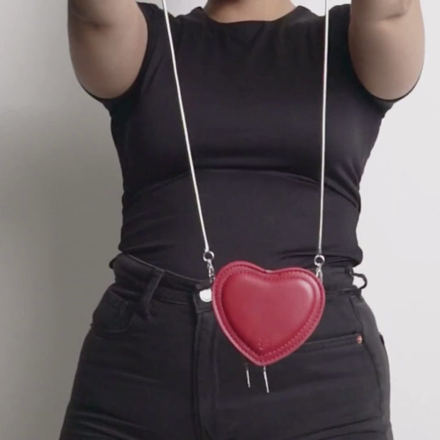 Our tiniest heart-shaped bag. Attach the long chain to go crossbody, or add as a charm to your belt, bag, or tote. It's the best possible home for airpods, bobby pins, even candy. We won't judge.