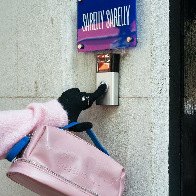 Embossed "S" and "Sarelly Creativo Lab" logos on the exterior