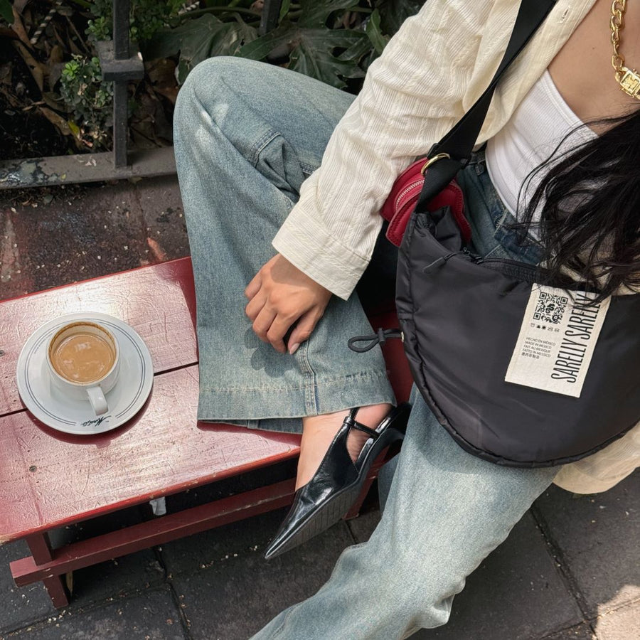 Tip: Tuck the flap into the back compartment to change up the look and reveal the SARELLY label for a subtle style switch.